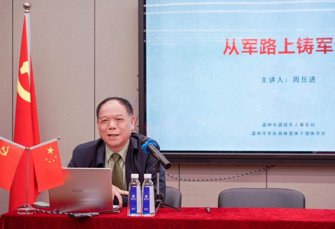 温州市军队离休退休干部周岳进讲党课,他以自己的亲身经历,生动的军医故事,勉励广大青年学生要锤炼意志品质、培养大学生树立报效祖国的远大目标,坚定永远跟党走的理想信念,为学生指明了奋斗方向。