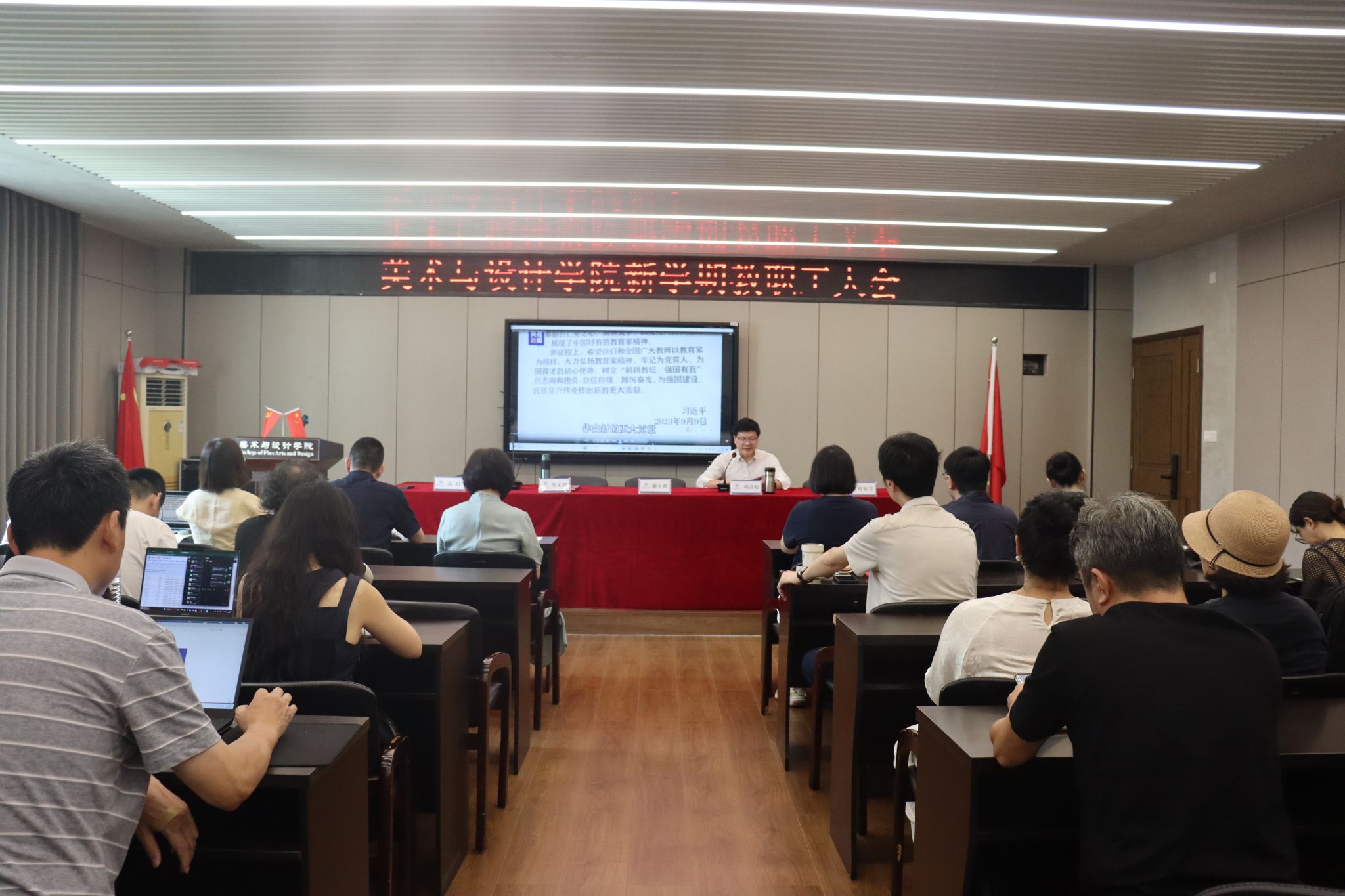 金秋奋进时,万象迎新季。9 月 17 日上午,黄色网 在 4001学术报告厅召开 2025-2026 学年秋季新学期全体教职工大会。本次会议由学院党委书记刘青松主持,学院领导班子及全体教职工齐聚一堂,共同开启新学期的征程。