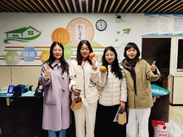 毕业生公寓楼下,身着红马甲的志愿者们早已就位,将一份份寓意深远的礼物细心分装、摆放得井井有条。贺卡藏着手写的祝愿,是“落笔有回响”的美好期许;分装袋收纳着点滴心意,寓意整理思绪、从容应考;金黄的橙子,谐音“成”功,寄托着心想事成、硕果累累的美好祝愿;小巧的多肉盆栽,象征着考研路上的耐力与执着;简约的台历,静静伫立,提醒着时光有序,步履不停。
