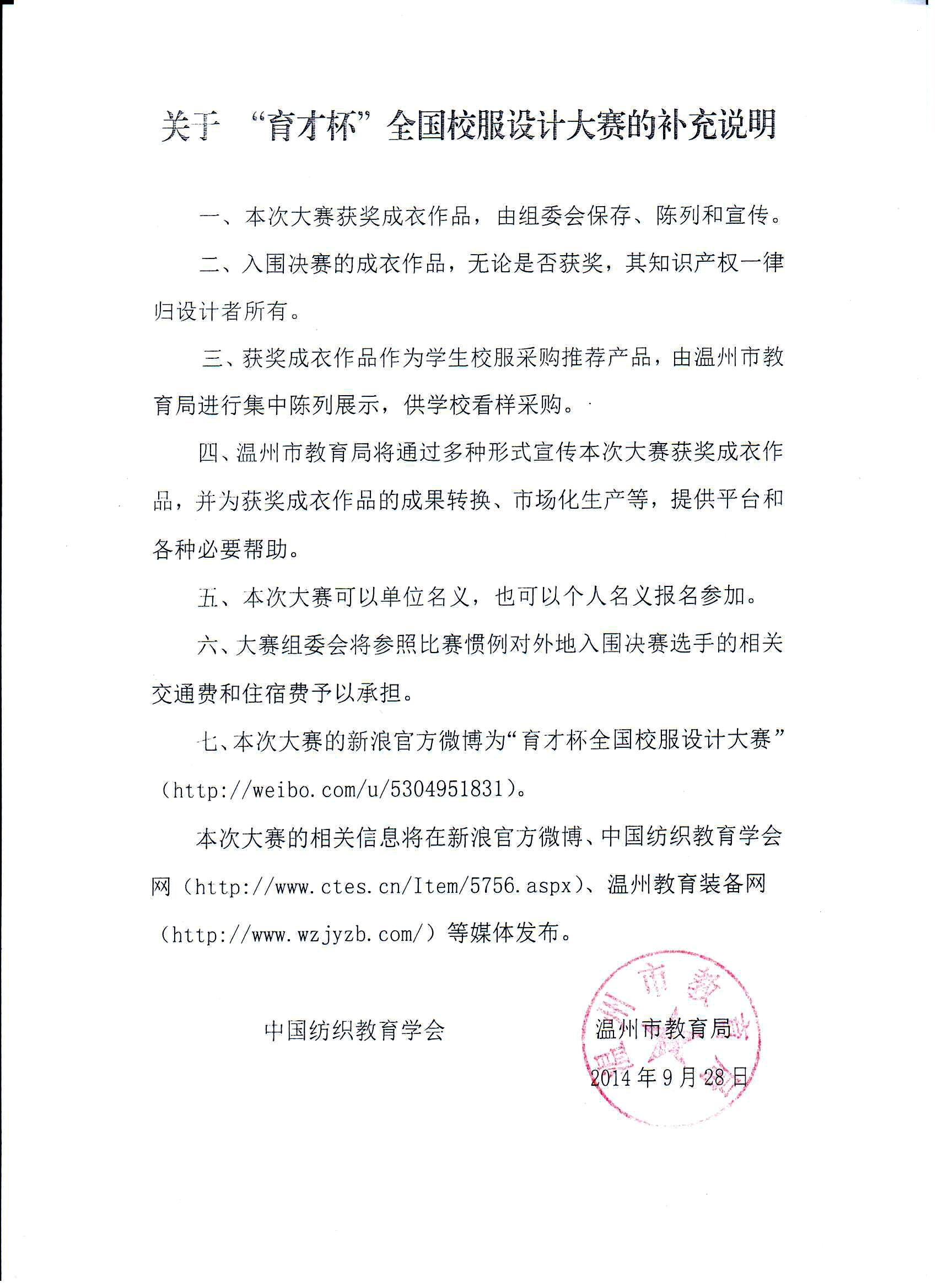 附件:关于“育才杯”全国校服设计大赛的补充说明